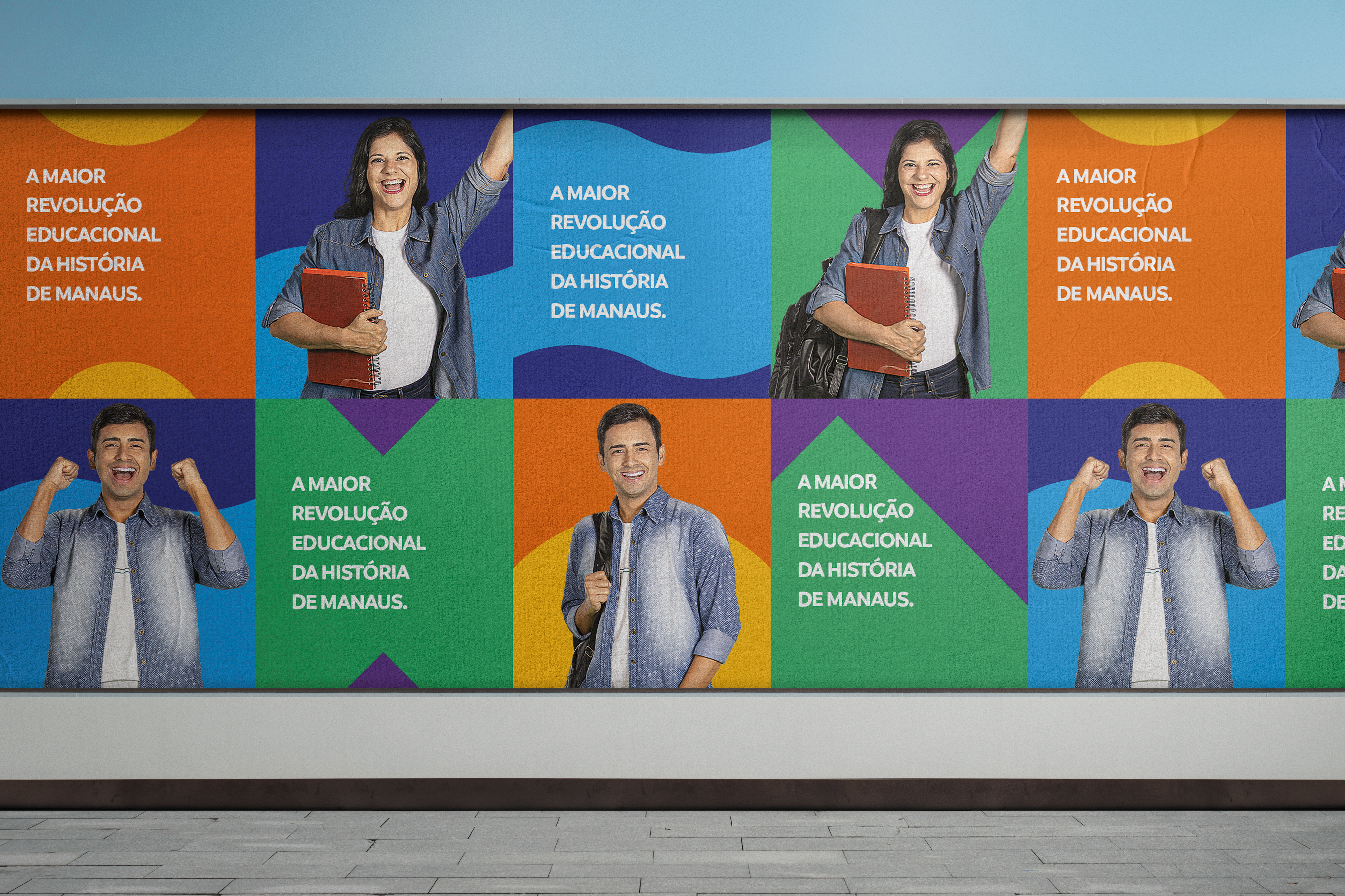 Baseado nesse mote, foram desenvolvidas comunicações visuais com bastantes cores, alegria e vibração para enaltecer e evidenciar essa conquista dos alunos da região norte.