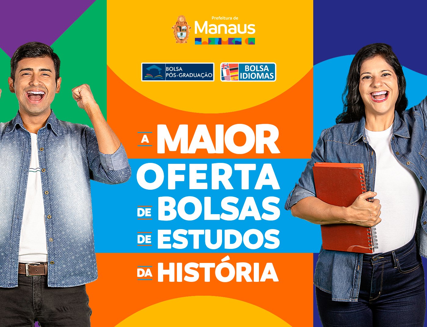 Nesse ano, a Prefeitura de Manaus garantiu mais de 61 mil bolsas de estudos idiomas e pós-graduação para pessoas de baixa renda, essa ação se configurou na maior oferta que a prefeitura realizou até hoje. Por isso, o mote da campanha desenvolvido foi “A maior revolução educacional da história de Manaus”.